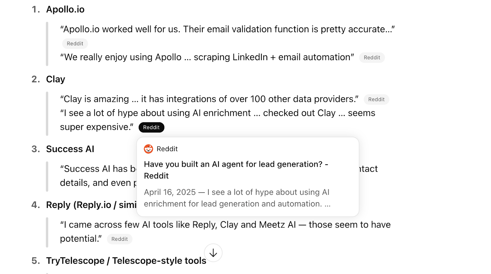 And later, when someone asks ChatGPT for “the best B2B tools for lead generation,” the model often references that Reddit knowledge to decide what brands to surface.